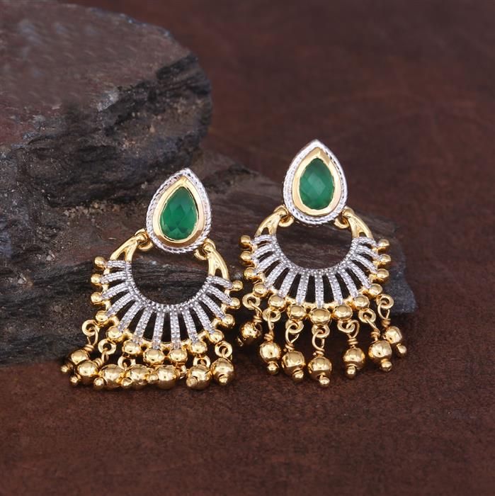Green Onyx Earrings in Gold Plated Sterling Silver
