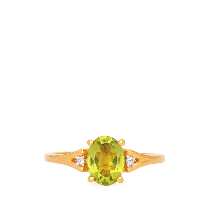 Hunan Peridot Ring with White Topaz in Gold Plated Sterling Silver