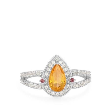 Imperial Quartz Ring with Rhodolite Garnet in Rhodium Flash Sterling Silver