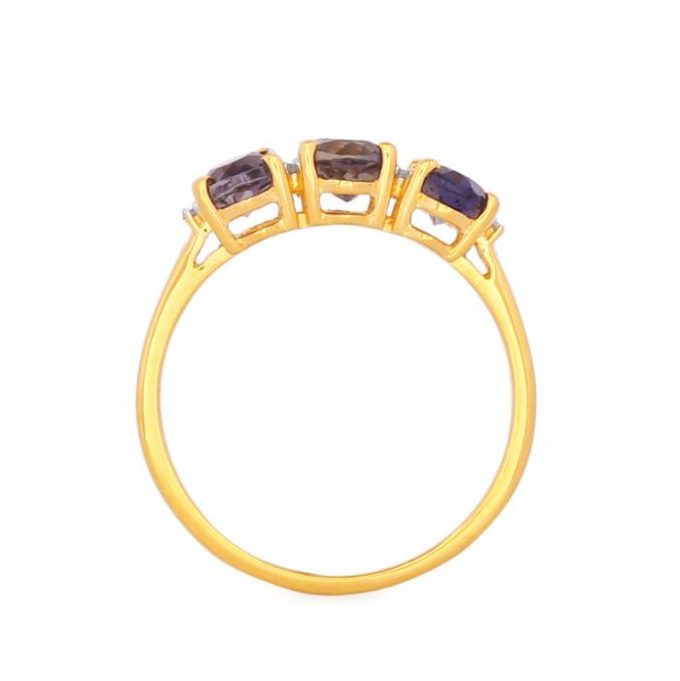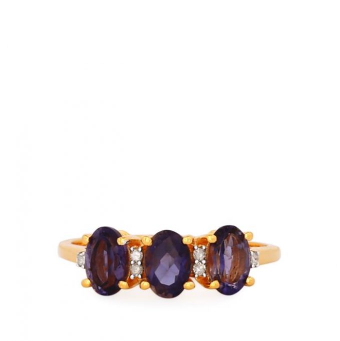 Iolite Ring with Diamond in Gold Plated Sterling Silver