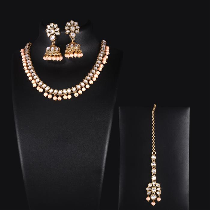 MaangTikka-Earrings-Necklace Heritage Fashion Set in Alloy