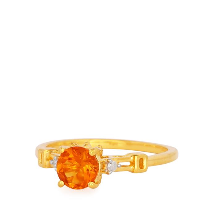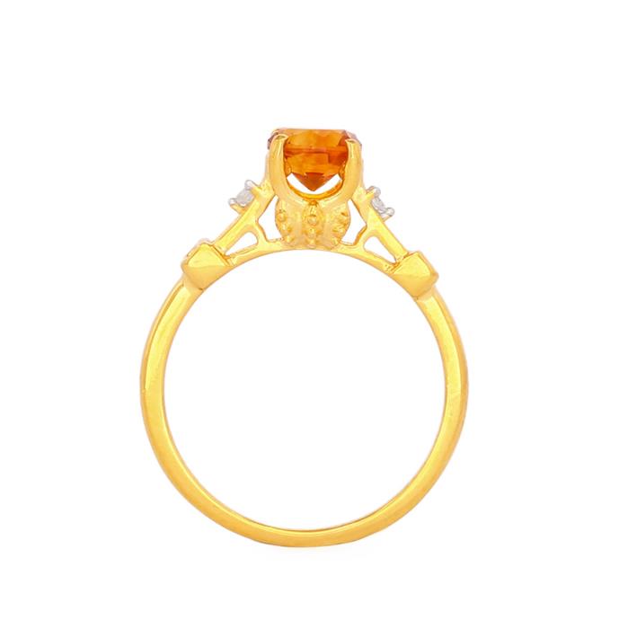 Madeira Citrine Ring with Diamond in Gold Plated Sterling Silver