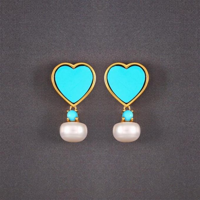 Magnesite Earrings with Cultured Pearl in Gold Plated Sterling Silver