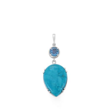 Magnesite Pendant with True Blue Topaz in Rhodium Flash Sterling Silver