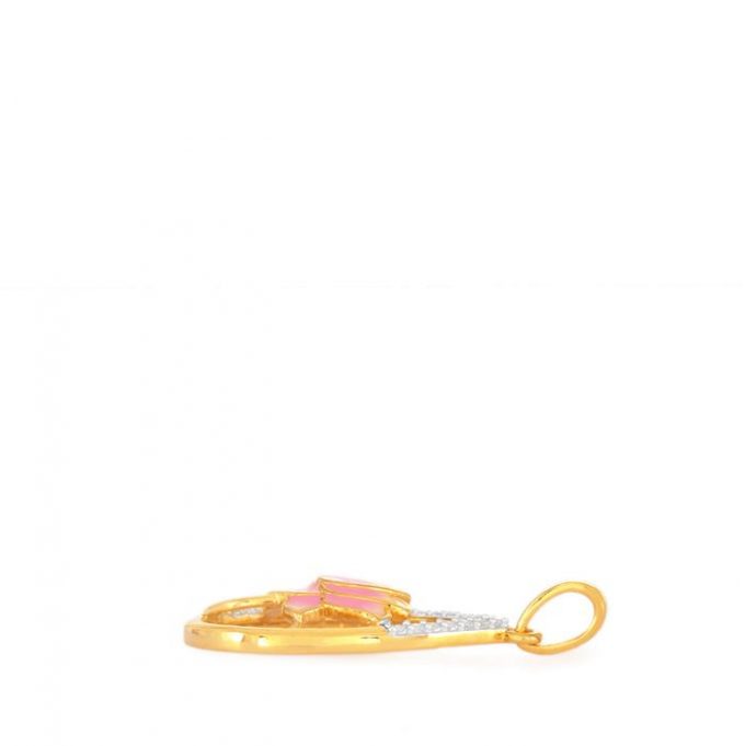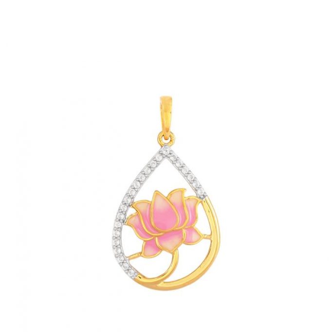 Meenakari Lotus Pendant with White Topaz in Gold Plated Sterling Silver