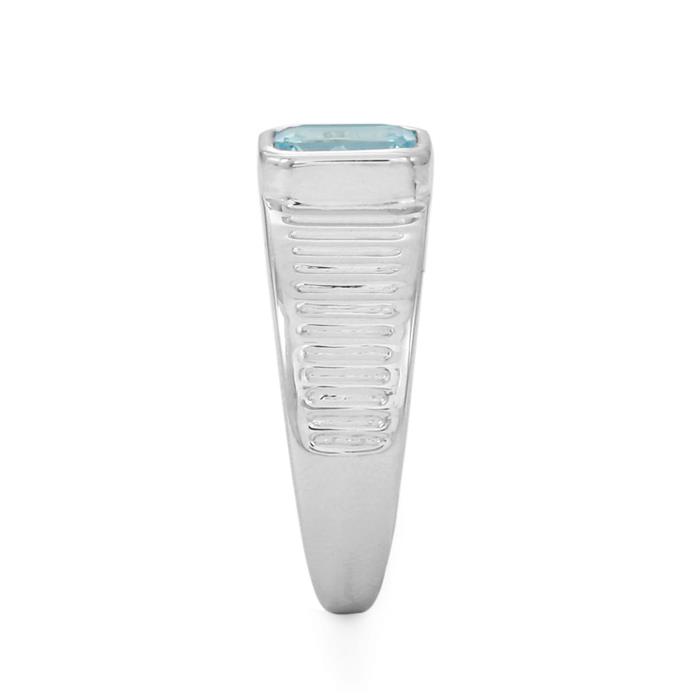 Mens Ring with Sky Blue Topaz in Rhodium Flash Sterling Silver