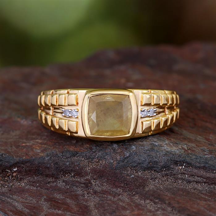Mens Ring with Yellow Sapphire & Diamond in Gold Plated Sterling Silver