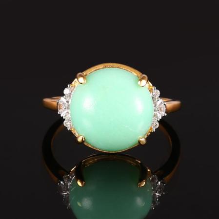 Mint Chrysoprase Ring with White Topaz in Gold Plated Sterling Silver