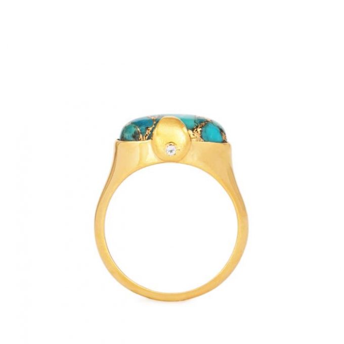 Mojave Copper Turquoise Ring with White Topaz in Gold Plated Sterling Silver