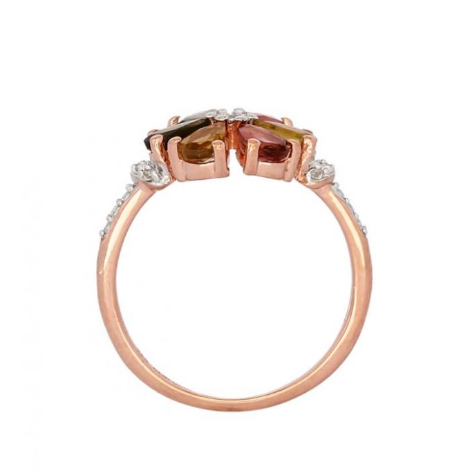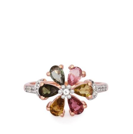 Multi-Colour Tourmaline Ring with White Topaz in Rose Gold Plated Sterling Silver