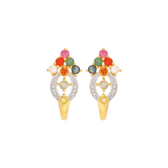 Navratna Earrings in Gold Plated Sterling Silver