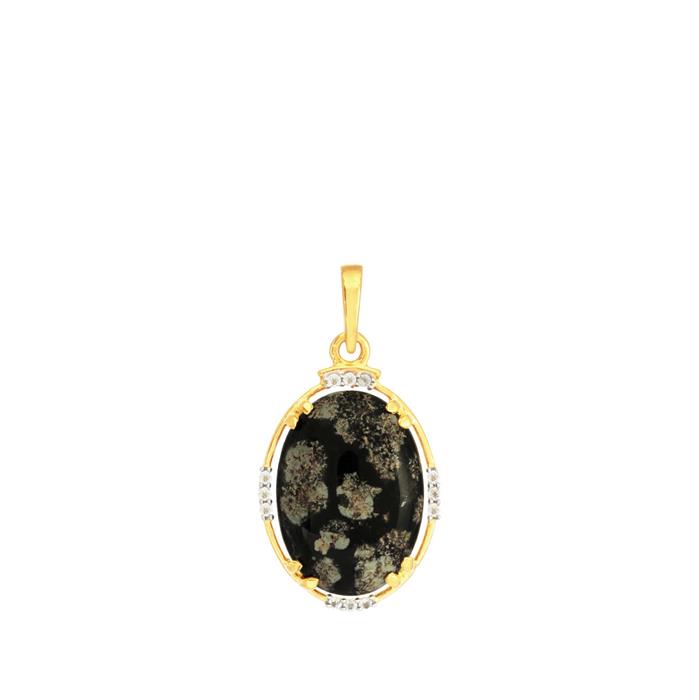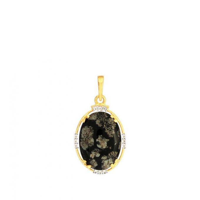 Obsidian Pendant with White Topaz in Gold Plated Sterling Silver