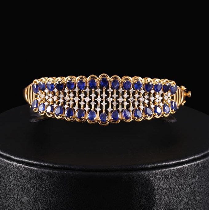 Open-able Bangle with Blue Sapphire & Diamond in Gold Plated Sterling Silver