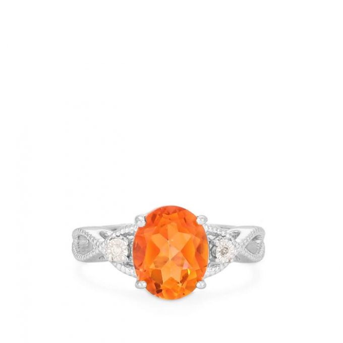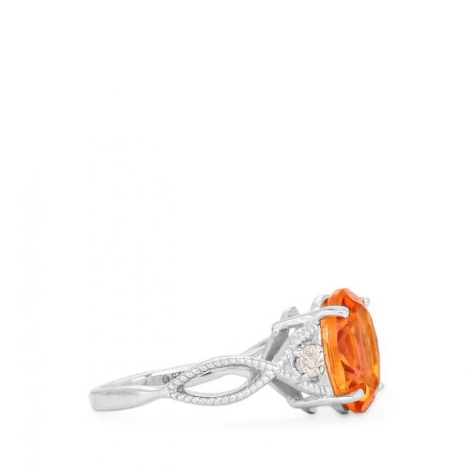Padparadscha Quartz Ring with Diamond in Rhodium Flash Sterling Silver (Miracle Plate Setting)