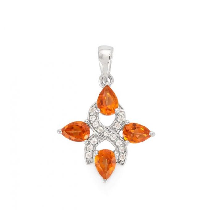 Padparadscha Topaz & White Topaz Pendant in Rhodium Flash Sterling Silver