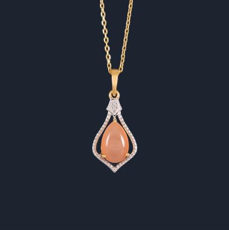 Peach Moonstone Pendant with White Topaz in Gold Plated Sterling Silver