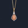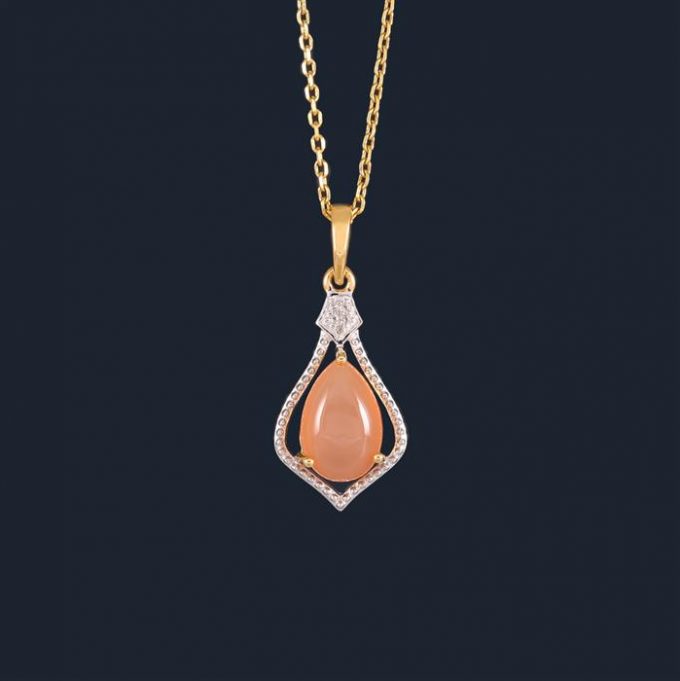 Peach Moonstone Pendant with White Topaz in Gold Plated Sterling Silver