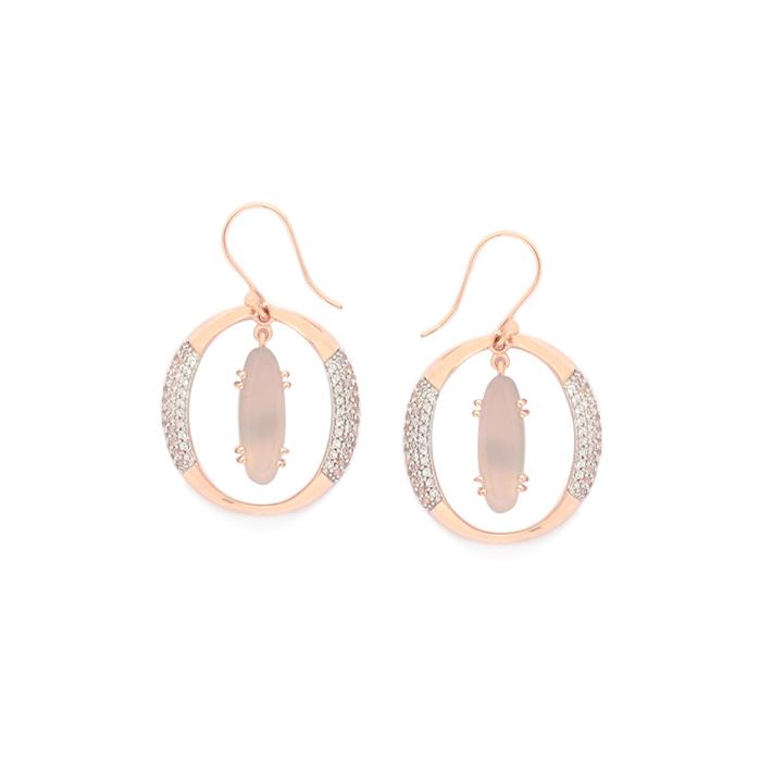 Pink Chalcedony Earrings with White Topaz in Rose Gold Plated Sterling Silver