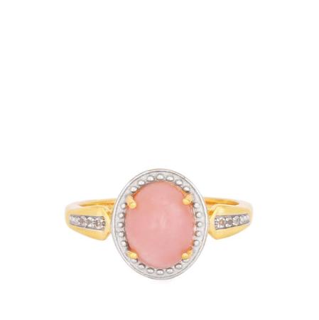 Pink Opal Ring with White Topaz in Gold Plated Sterling Silver