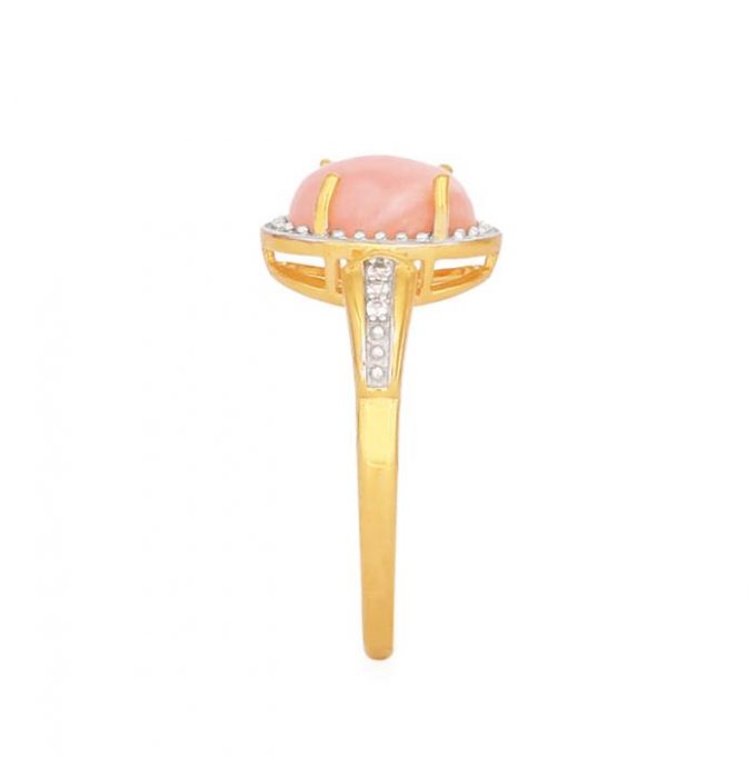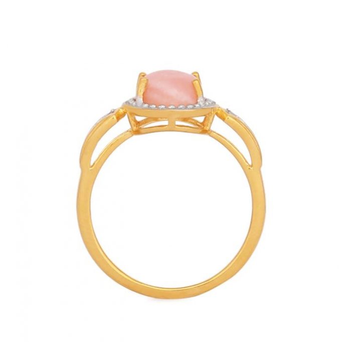 Pink Opal Ring with White Topaz in Gold Plated Sterling Silver