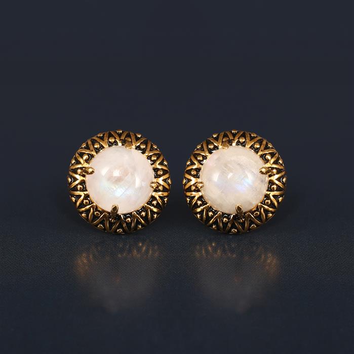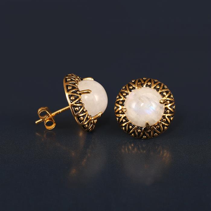 Rainbow Moonstone Earrings in Gold Plated Sterling Silver