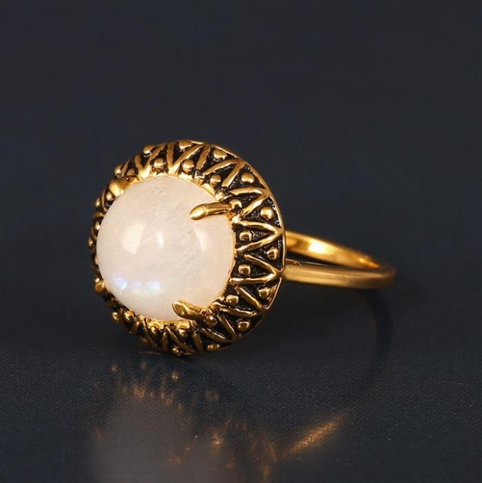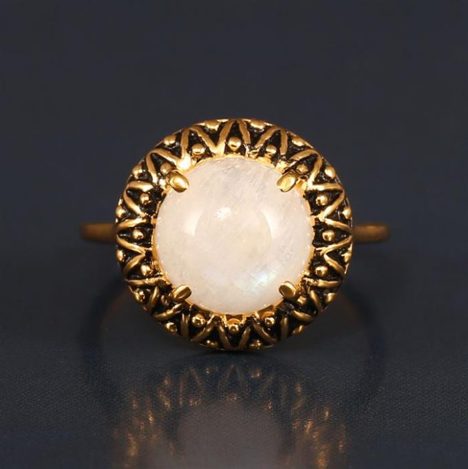 Rainbow Moonstone Ring in Gold Plated Sterling Silver