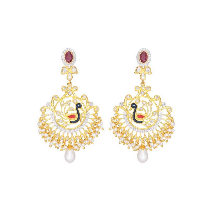 Rajwada Earrings with 1 Ct. Diamonds & Ruby in Gold Plated 925 Silver