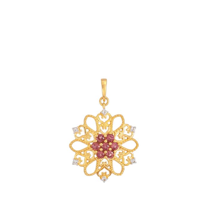 Rhodolite Garnet Pendant with White Topaz in Gold Plated Sterling Silver