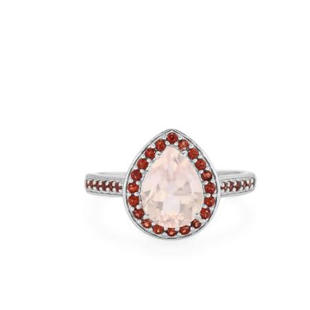 Rose Quartz & Garnet Ring in Rhodium Flash Sterling Silver