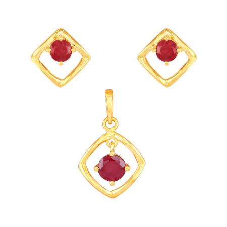 Ruby Earrings-Pendant Set in Gold Plated Sterling Silver