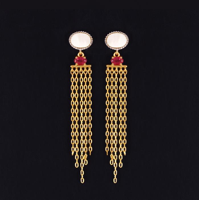 Ruby Earrings with Mother of Pearl in Gold Plated Sterling Silver