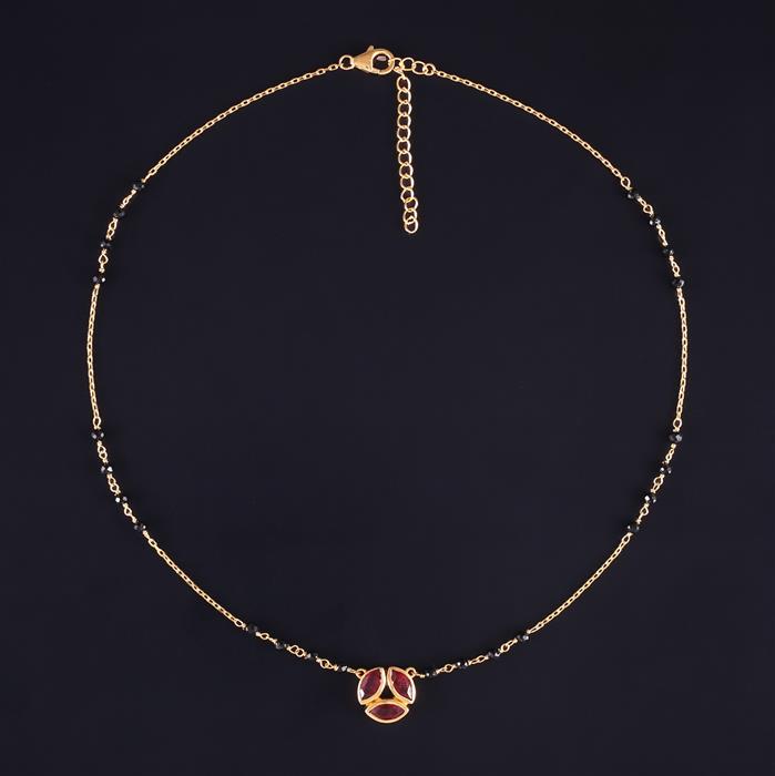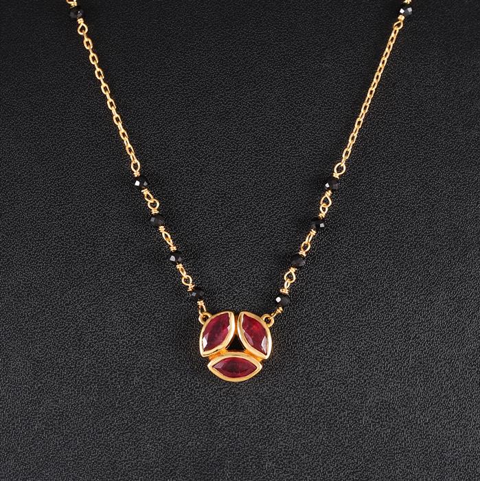 Ruby Necklace with Black Spinel in Gold Plated Sterling Silver