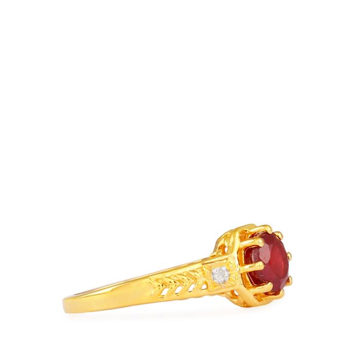 Ruby Ring with Diamond in Gold Plated Sterling Silver