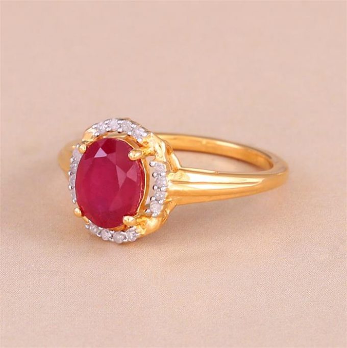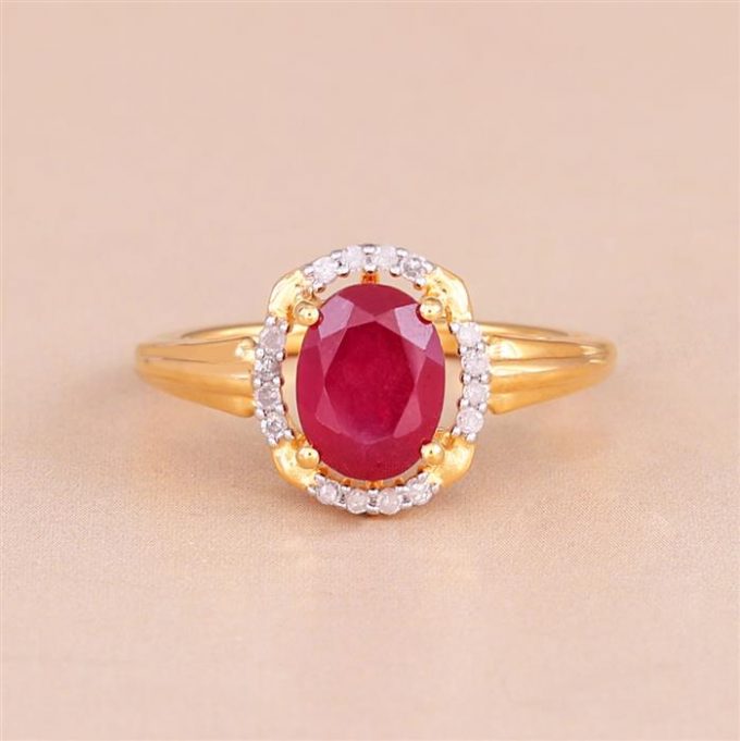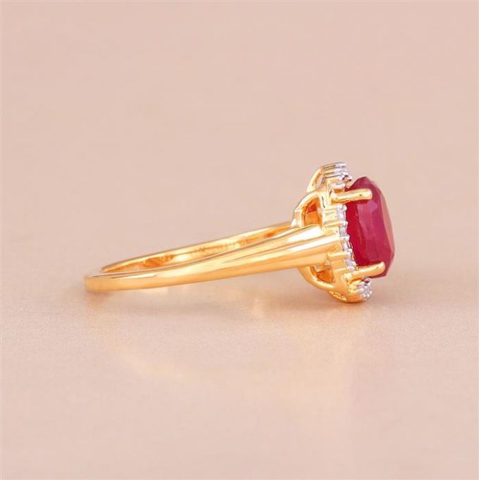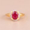 Ruby Ring with Diamond in Gold Plated Sterling Silver
