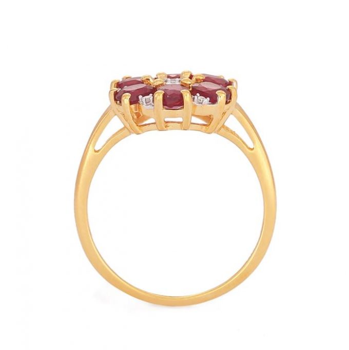 Ruby Ring with Diamond in Gold Plated Sterling Silver