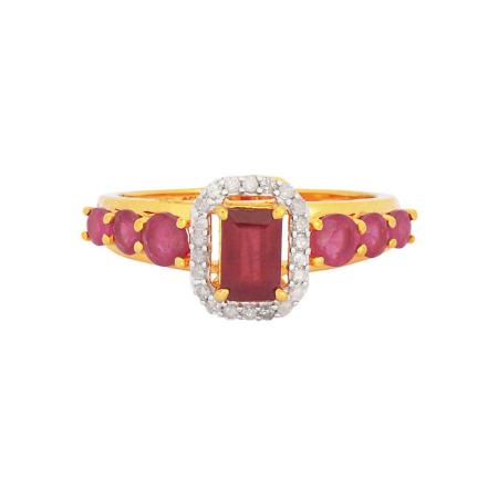 Ruby Ring with Diamond in Gold Plated Sterling Silver