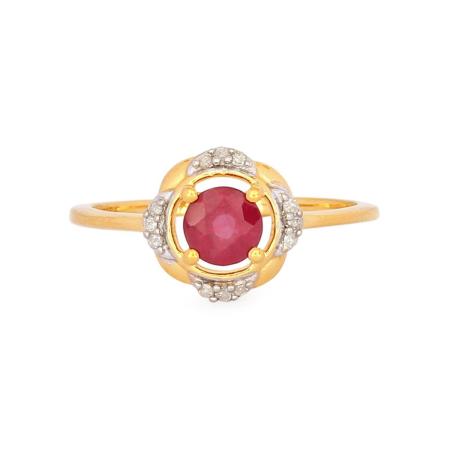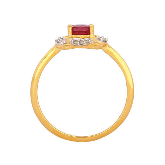 Ruby Ring with Diamond in Gold Plated Sterling Silver