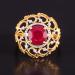 Ruby Ring with Diamond in Gold Plated Sterling Silver