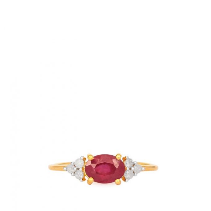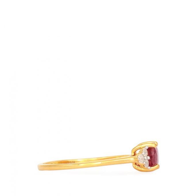 Ruby Ring with Diamond in Gold Plated Sterling Silver