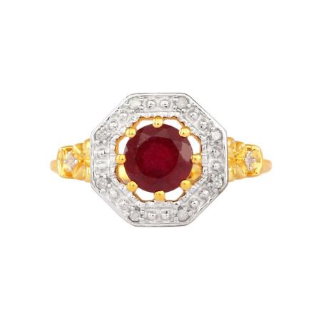 Ruby Ring with Diamond in Gold Plated Sterling Silver