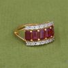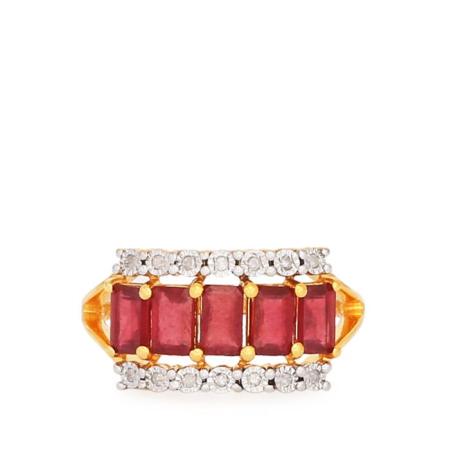 Ruby Ring with Diamond in Gold Plated Sterling Silver (Miracle Plate)