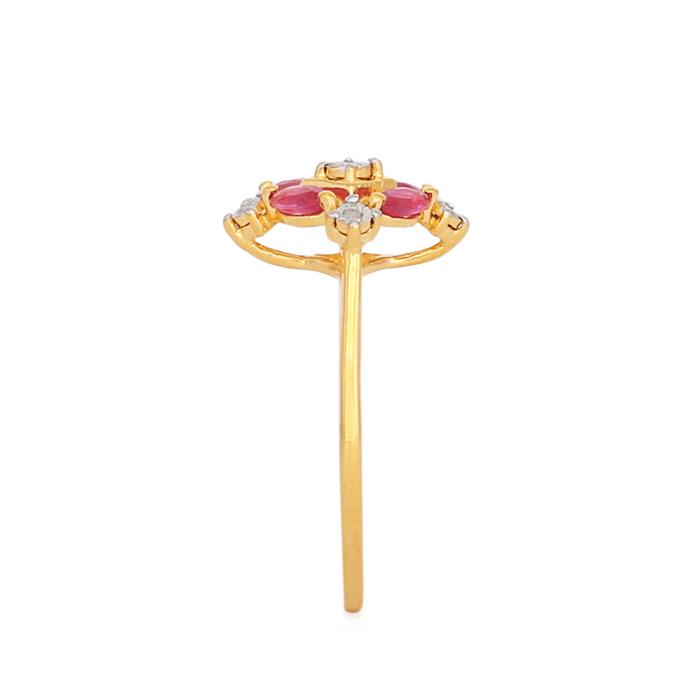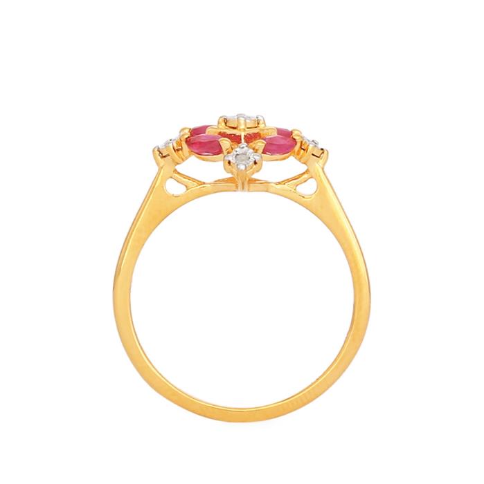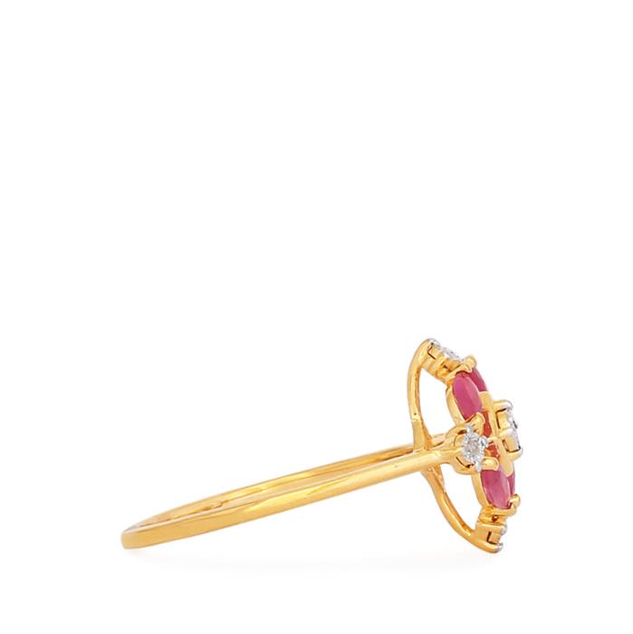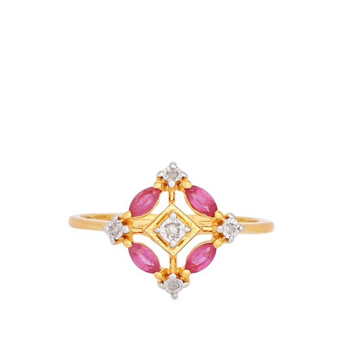 Ruby Ring with Diamond in Gold Plated Sterling Silver (Miracle Plate Setting)