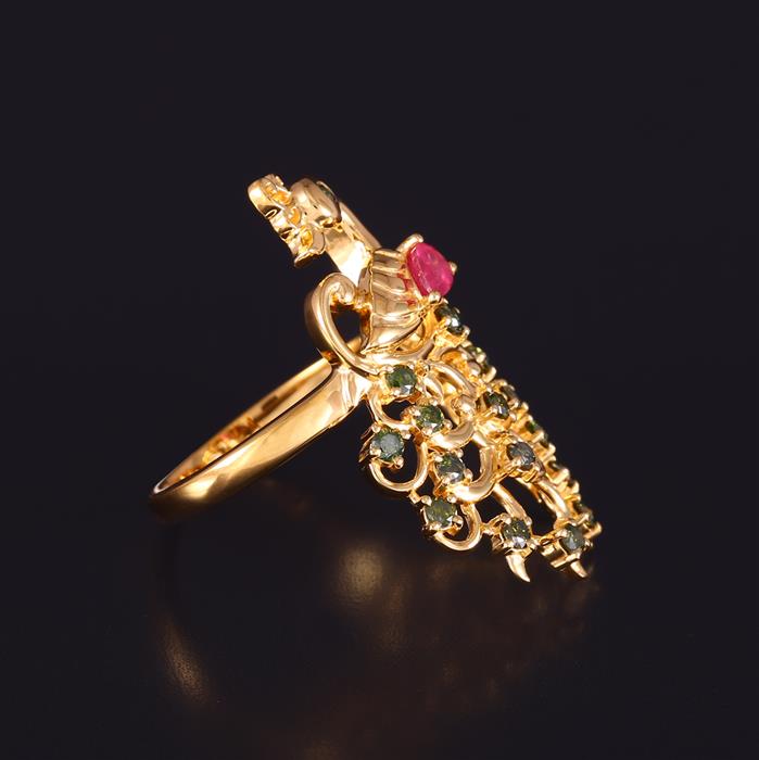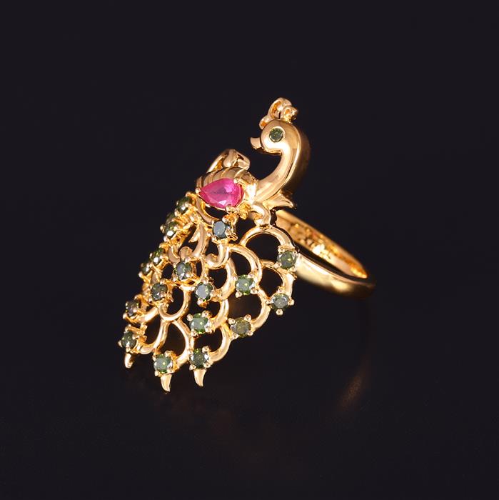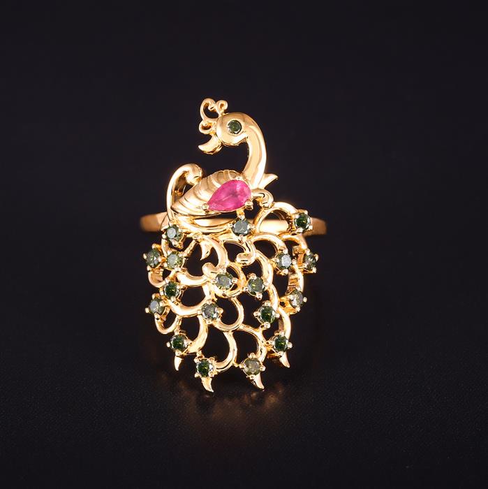 Ruby Ring with Green Diamond in Gold Plated Sterling Silver