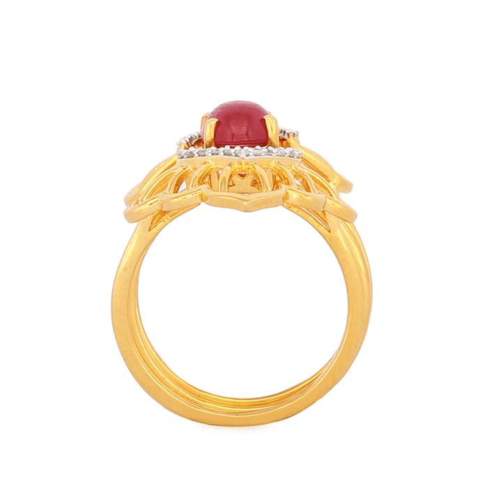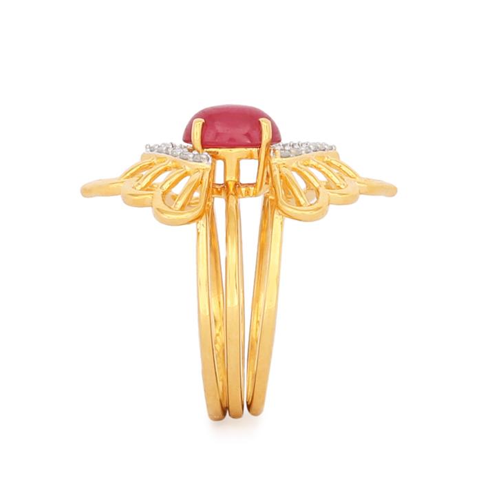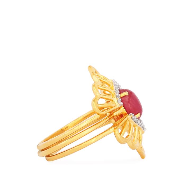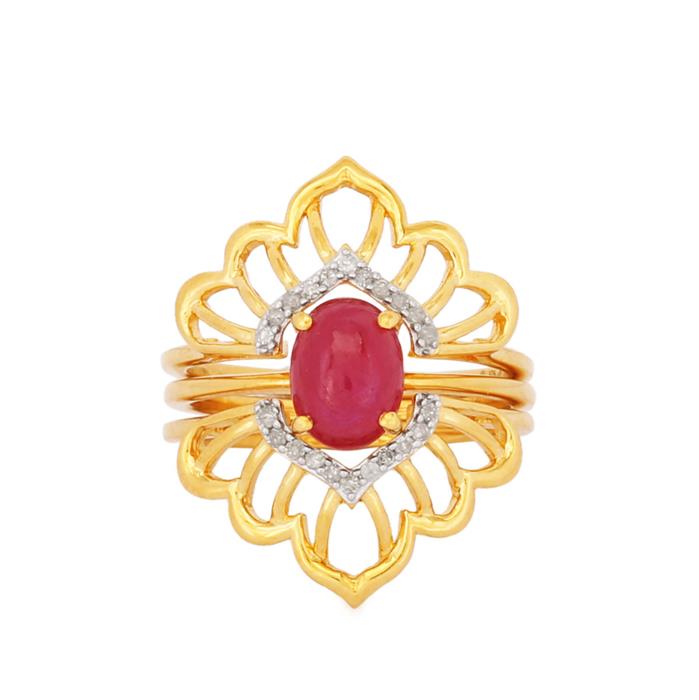Set of 3 Diamond Stacker Rings with Ruby in Gold Plated Sterling Silver