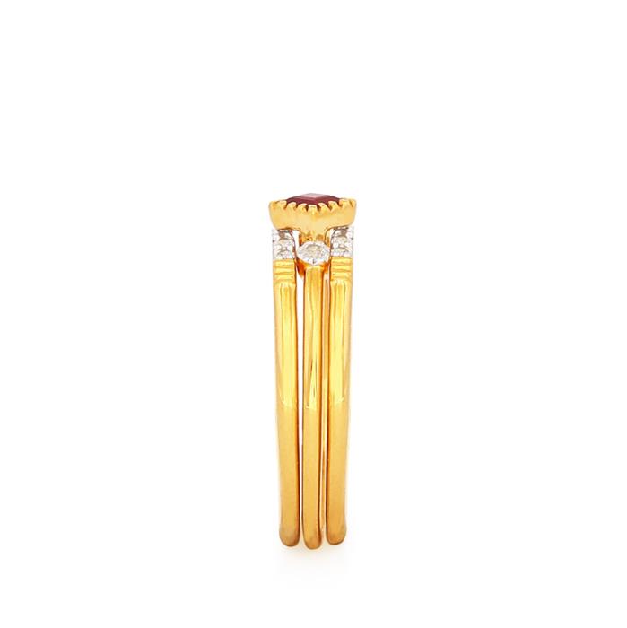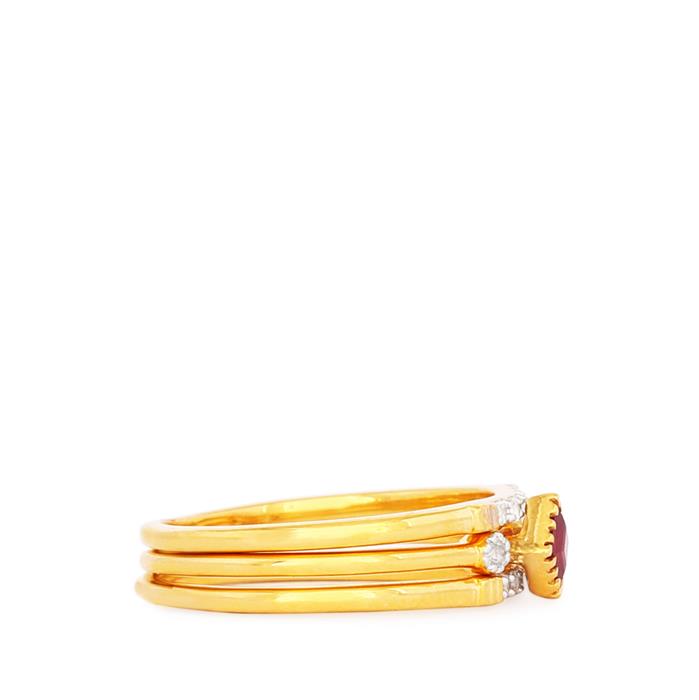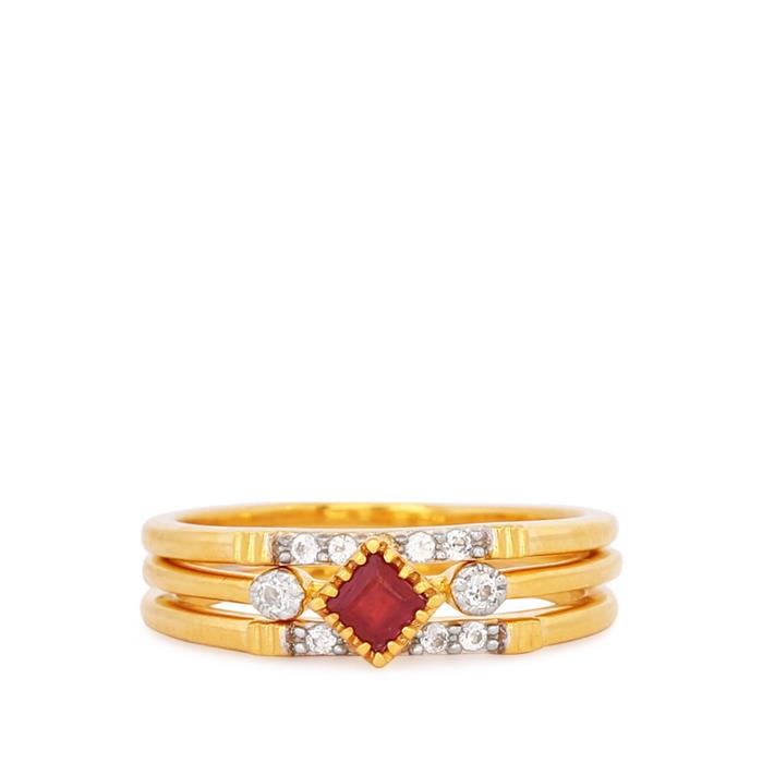 Set of 3 Stacker Rings with Ruby & White Topaz in Gold Plated Sterling Silver