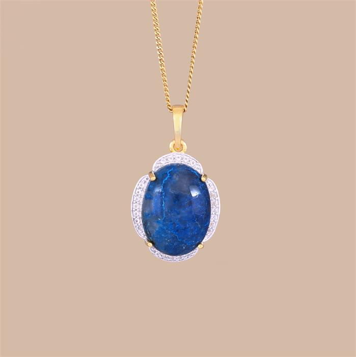 Shattuckite Quartz Pendant with White Topaz in Gold Plated Sterling Silver