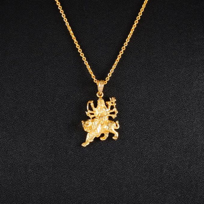 Sherawali Mata Diamond Studded Pendant with Chain in Alloy