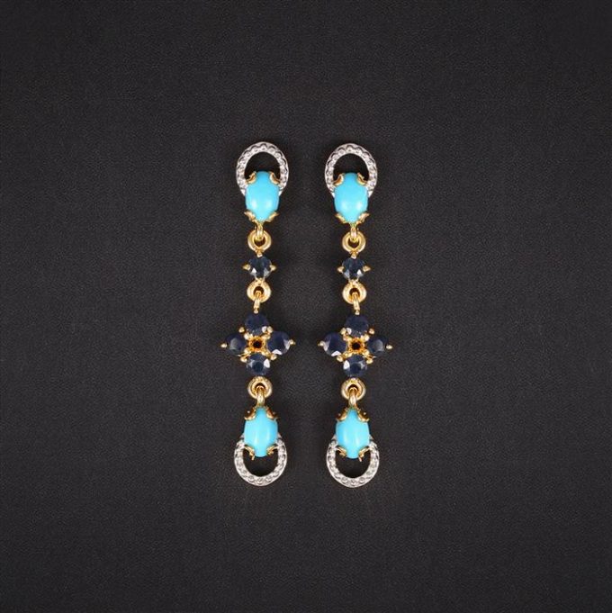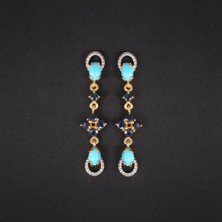 Sleeping Beauty Turquoise Earrings with Blue Sapphire in Gold Plated 925 Silver