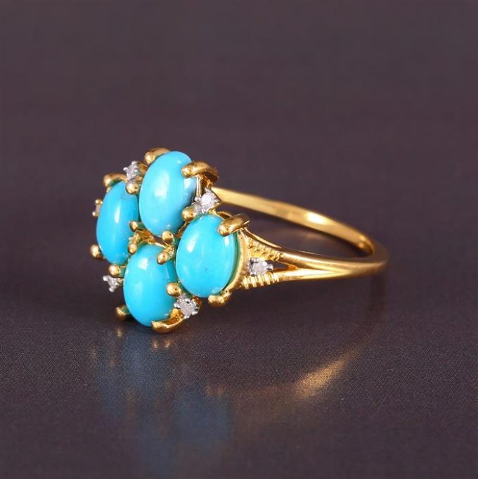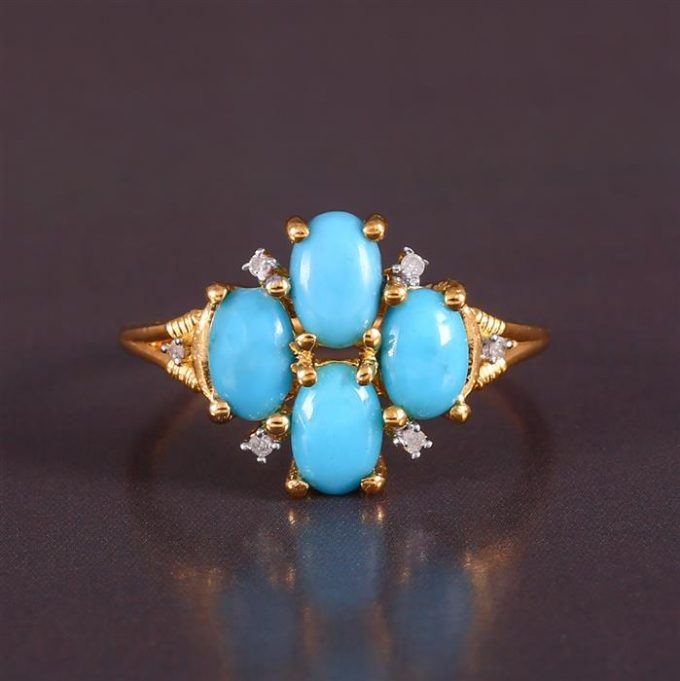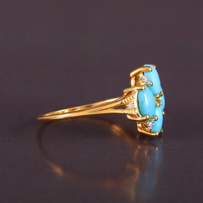Sleeping Beauty Turquoise Ring with Diamond in Gold Plated Sterling Silver
