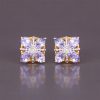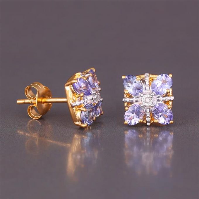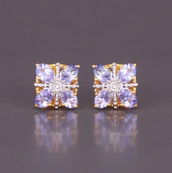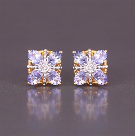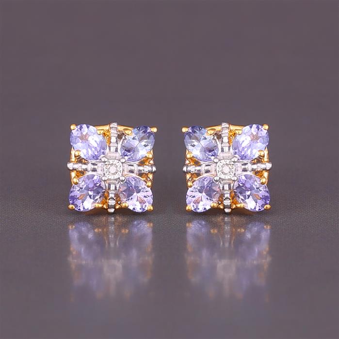 Tanzanite Earrings with Diamond in Gold Plated Sterling Silver (Miracle Plate)